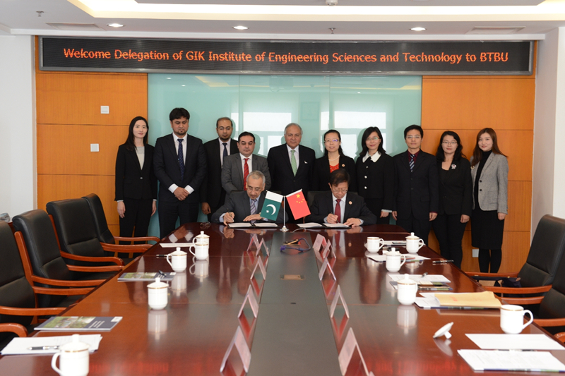 會談后,孫寶國校長和賈吉汗·巴沙爾校長分別代表兩校簽訂了北京工商大學和巴基斯坦GIK工程科技學院諒解合作備忘錄。