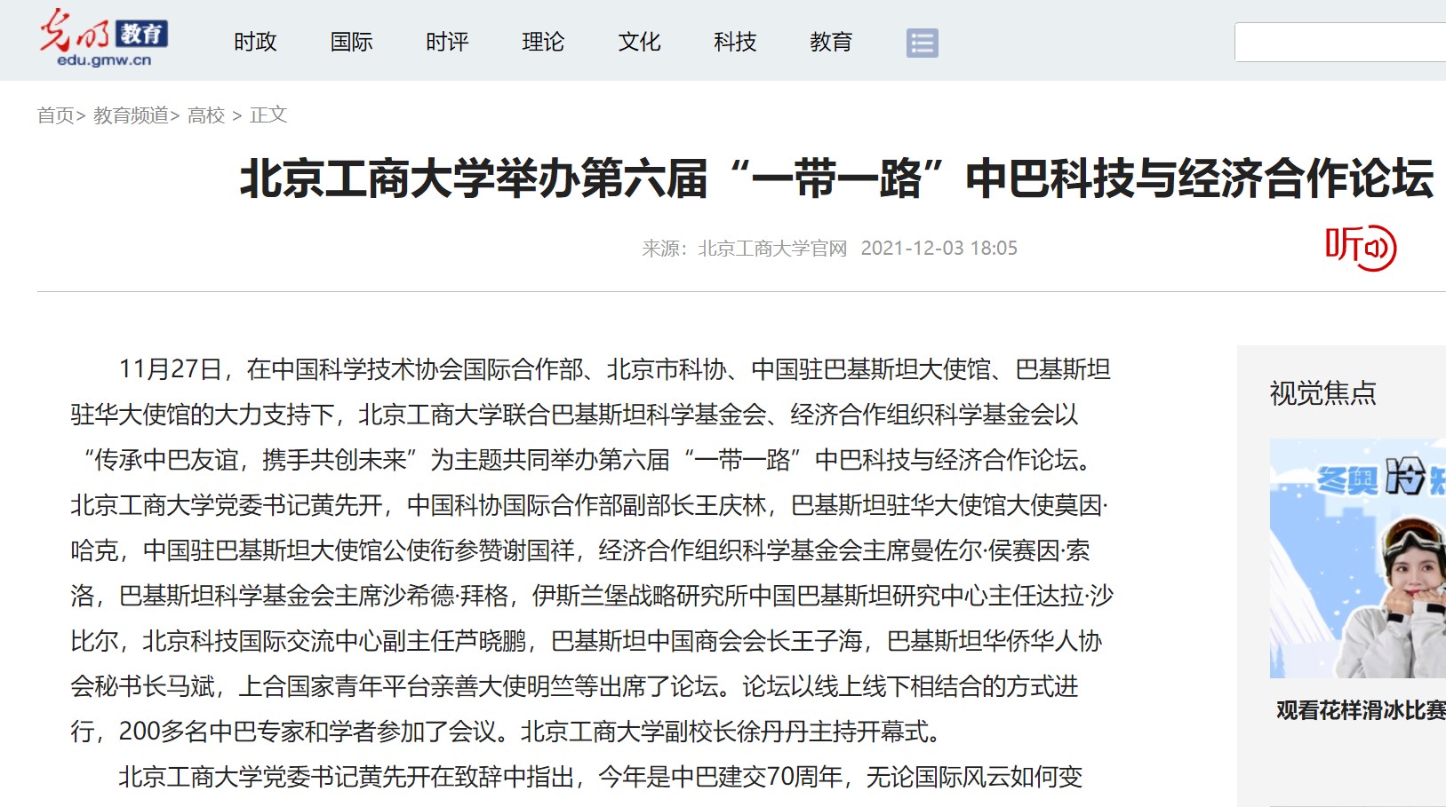 【光明網】北京工商大學舉辦第六屆“一帶一路”中巴科技與經濟合作論壇