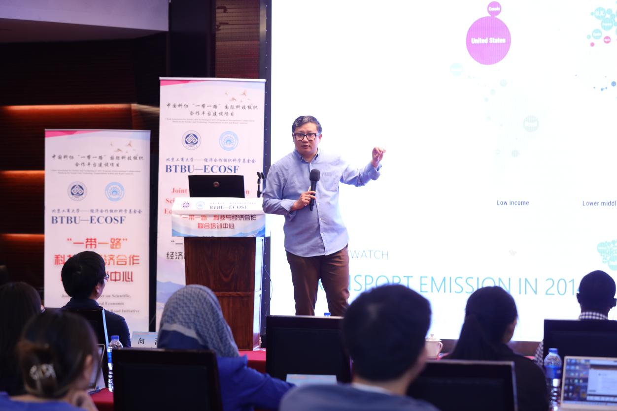 鄭文紅副校長在致辭中感謝各位專家為此次培訓授課,對世界各國的學員參加此次培訓表示歡迎。他指出,北京工商大學具有七十多年的辦學歷史,是北京市重點建設的高水平研究型大學。學校堅持開放辦學,不斷拓展全球合作伙伴,與世界一流大學和學術機構以及相關國際組織開展實質性合作。近年來,中國始終秉持“共商、共建、共享”原則,堅持“開放、綠色、廉潔”理念,與相關國家開展合作,推動綠色“一帶一路”建設。世界各國面臨著氣候變化帶來的危機和挑戰,希望學習和借鑒中國在相關領域的發展經驗。為此,我校與經濟合作組織科學基金會開展此次培訓,希望各位專家能給參與培訓的各國學員帶來精彩的內容和有益的經驗,希望此次培訓能夠促進國家間的交流合作,推動構建人類命運共同體,實現全球可持續發展。
