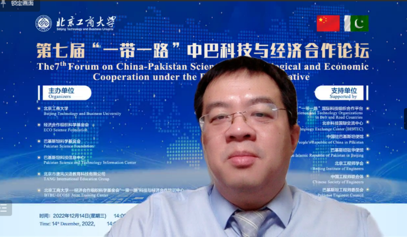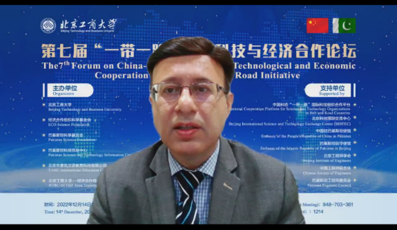 王慶林在致辭中表示,秉持以科學繁榮發展造福各國人民的理念,中國科協高度重視與世界各國的科技合作和人文交流,致力于增進科技界的開放、信任、合作,推動構建全球科技共同體。2016年中國科協啟動實施了“一帶一路”國際科技組織合作平臺建設,吸引了200多個國際組織和150多個國家的1000多個國別組織和機構參與,成為了全球科技界開展科技人文交流與合作的重要支撐平臺。北京工商大學巴基斯坦科技與經濟研究中心是第一批獲得“一帶一路”國際科技組織合作平臺建設項目資助的國別研究中心。中巴兩國是親如兄弟的友好鄰邦。在11月巴基斯坦總理夏巴茲閣下訪華期間,習近平主席強調,近年來兩國在世界變局亂局中相互支持、砥礪前行,彰顯中巴“鐵桿”情誼。中國科協也將以實際行動落實兩國領導人的會晤精神,在工作中持續推動構建中巴命運共同體。