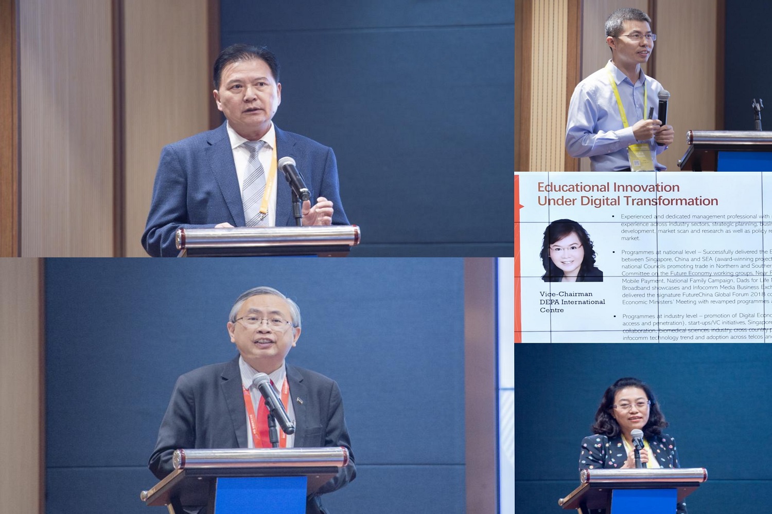 在主旨發(fā)言環(huán)節(jié),來自北京市教育國際交流協(xié)會會長黃侃、馬來西亞拉曼大學(xué)校長尤芳達(dá)(Ewe Hong Tat)、貴州理工學(xué)院校長潘良明、江西開放大學(xué)黨委書記賀瑞虎、我校研究生院院長兼商學(xué)院院長毛新述、新加坡數(shù)字經(jīng)濟(jì)伙伴關(guān)系協(xié)定國際中心副主席董事陳雅麗(Alice Chan)、印度尼西亞萬隆克里斯汀大學(xué)商學(xué)院教授索亞·薩特皖(Surya Setyawan)、我校國際經(jīng)管學(xué)院數(shù)字經(jīng)濟(jì)研究院執(zhí)行院長葛紅玲教授等八位嘉賓,圍繞數(shù)字化轉(zhuǎn)型下的教育創(chuàng)新,就如何推進(jìn)教育數(shù)字化轉(zhuǎn)型、數(shù)字化發(fā)展對人才培育的新要求、數(shù)智時(shí)代的機(jī)遇與挑戰(zhàn)、數(shù)字化教育取得的成功經(jīng)驗(yàn)進(jìn)行了交流和分享。