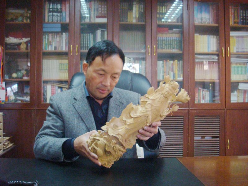 求學(xué)深造的同時(shí),林國(guó)水更注重的是家鄉(xiāng)工藝的發(fā)展。曾經(jīng)背井離鄉(xiāng)靠著做籠屜生意解決溫飽問(wèn)題,而如今學(xué)業(yè)事業(yè)都有成的他一心想發(fā)展家鄉(xiāng)的工藝美術(shù)事業(yè)。于是他瞄準(zhǔn)了木雕古典家具產(chǎn)業(yè),在北京昌平征地100余畝,新建了北京九牧林氏昌平紅木家具生產(chǎn)銷售基地,弘揚(yáng)中國(guó)傳統(tǒng)木雕及古典家具文化。現(xiàn)如今其名下的企業(yè)可謂享譽(yù)四海。歷屆中央政府頒給香港特首董建華、曾蔭權(quán)和澳門特首何厚鏵的認(rèn)職證書的相框,都是出自林國(guó)水的木雕廠。“九牧林氏的作品還引起了故宮研究院的興趣,更甚者已被中南海收藏。異鄉(xiāng)創(chuàng)業(yè)開天地,只為一朝報(bào)桑梓”,生意是越做越大,但家鄉(xiāng)的養(yǎng)育之恩林國(guó)水始終難忘,他從家鄉(xiāng)找來(lái)數(shù)十位木雕技師,帶動(dòng)家鄉(xiāng)的人員發(fā)展,這發(fā)展的不光是家鄉(xiāng)的經(jīng)濟(jì),更重要的是家鄉(xiāng)的文化。林國(guó)水這樣告訴記者:“我們福建人比較戀家,做大了也想回報(bào)生育我們的那塊土地。當(dāng)然也看到了這幾年海西經(jīng)濟(jì)的發(fā)展,也看到莆田市委市政府的決心,我認(rèn)為應(yīng)該回去回報(bào)家鄉(xiāng)。”或許就是因?yàn)橛辛讼窳謬?guó)水這樣熱愛(ài)家鄉(xiāng)、熱愛(ài)家鄉(xiāng)民間藝術(shù)的企業(yè)家,民間藝術(shù)才能代代延續(xù)、發(fā)揚(yáng)光大。
