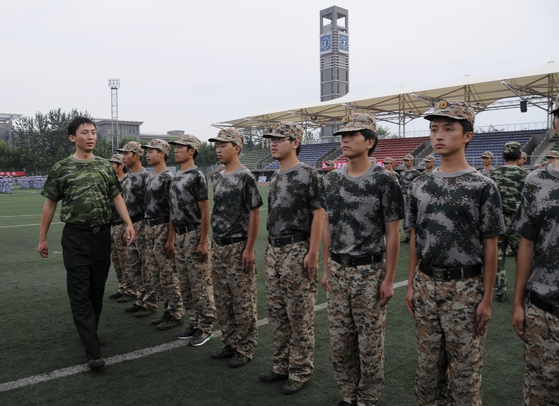 初見二營七連的指導員王一老師,是他剛剛檢查完學生宿舍,正匆忙地趕向訓練場。身上的綠色軍裝早已被汗水浸透,他高大魁梧的身材卻依舊挺拔,不失軍人氣質(zhì)。