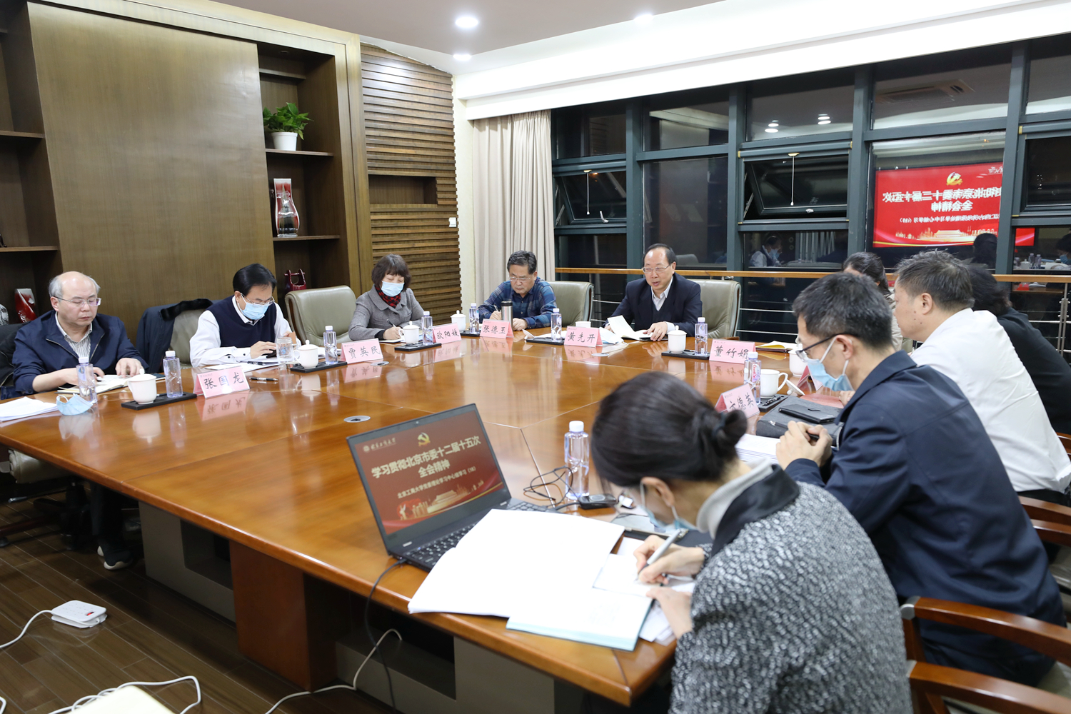 12月8日下午,學校在良鄉校區召開黨委理論學習中心組專題學習會,深入學習研討中共北京市委十二屆十五次全會精神,并部署貫徹落實工作。學校黨委理論學習中心組成員參加學習會,會議由黨委書記黃先開主持。