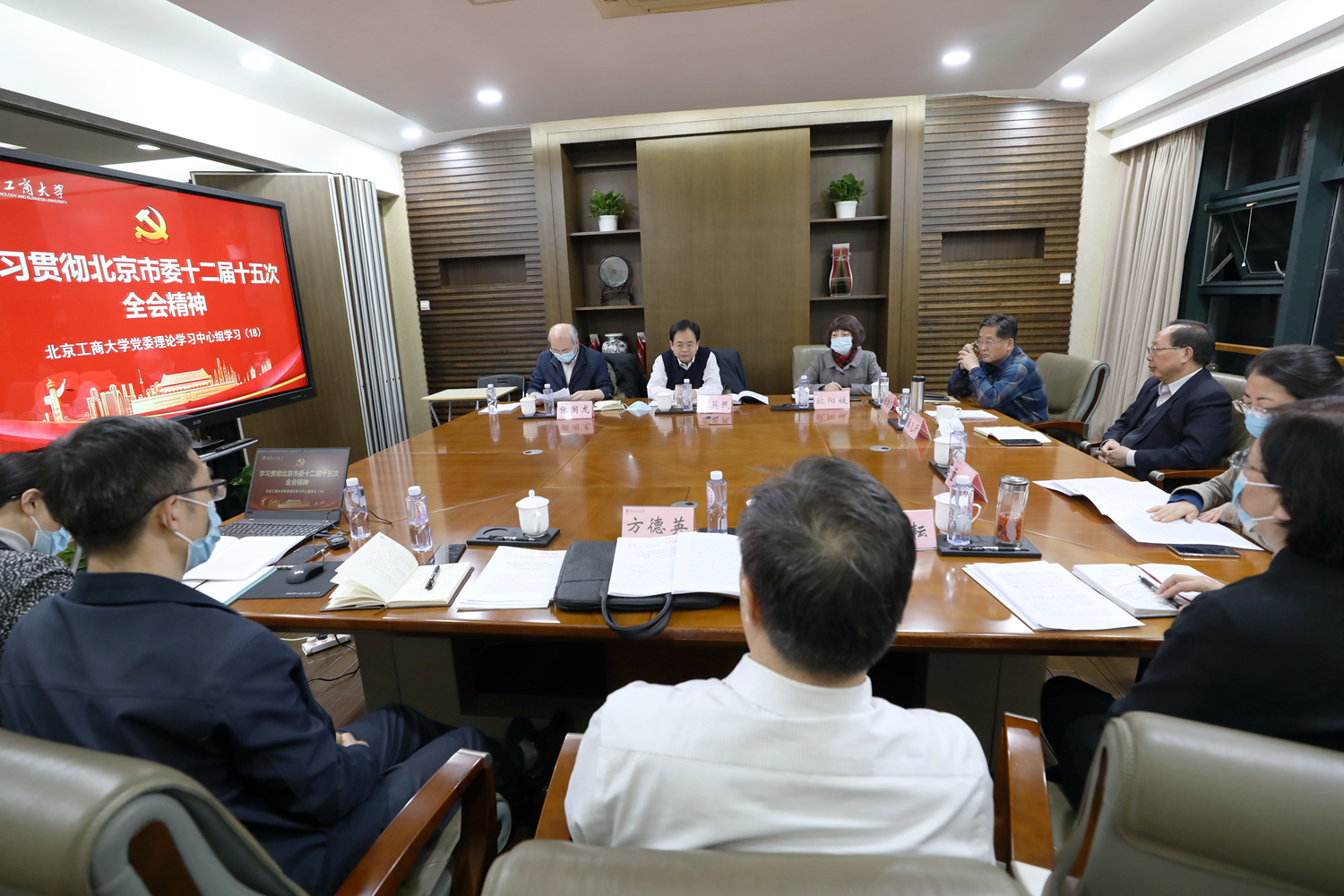 黃先開書記在總結講話中,從發展原則、發展目標、發展戰略、發展抓手、發展保障五個維度,系統闡釋了市委十二屆十五次全會精神,并提出了下一階段工作要求。他指出,要深入研究、準確把握北京市“十四五”規劃和2035年遠景目標,并以此為指引,找準著力點,推進學校發展。他談到,市委全會明確了“十四五”時期北京經濟社會發展的原則,一是推動高質量發展,二是堅持創新驅動發展,三是構建新發展格局;提出了發展目標,即首都發展應當始終堅持首善標準,各項工作都要爭創一流、走在前列,率先基本實現社會主義現代化;強調了發展戰略,一是深入落實“四個中心”戰略定位,二是深入實施“三個北京”戰略,三是深入推進京津冀協同發展戰略;指出了發展抓手,即抓好“兩區”“三平臺”建設;指明了發展保障,一是堅持和加強黨的領導,二是強化人才隊伍建設。黃先開書記強調,首都未來發展藍圖已繪就,學校各單位要緊密對接中央和市委規劃建議要求,聯系學校實際,堅持首善標準,謀深謀實學校“十四五”時期各項工作任務,以建設國際科技創新中心為新引擎,以“兩區”“三平臺”建設為銜接點,充分發揮相關學科專業優勢,持續深化體制機制創新,大力引進和培養高端人才,不斷提高站位、開闊視野,內挖潛力、善借外力,探索創新驅動跨越發展的北工商模式,在全面建設社會主義現代化國家新征程中作出北工商貢獻。