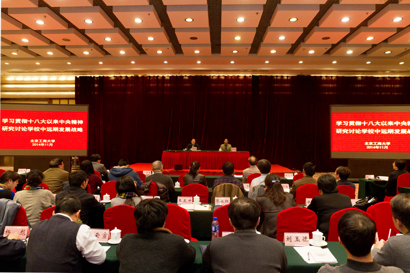 會議邀請國務院研究室黃守宏副主任、教育部政策法規司孫霄兵司長、北京市教委線聯平主任做專題報告,介紹了十八來以來國家政治、經濟和高等教育的發展狀況及趨勢,幫助大家了解國家宏觀發展背景和我國高等教育改革發展的主要任務。黨委書記譚向勇和校長孫寶國發表講話,對學校近中期工作和發展提出了要求和思路。4位學院負責人和5位職能部門負責人分別就有關工作做了發言,在總結過去的基礎上討論了存在的問題并提出今后發展目標。