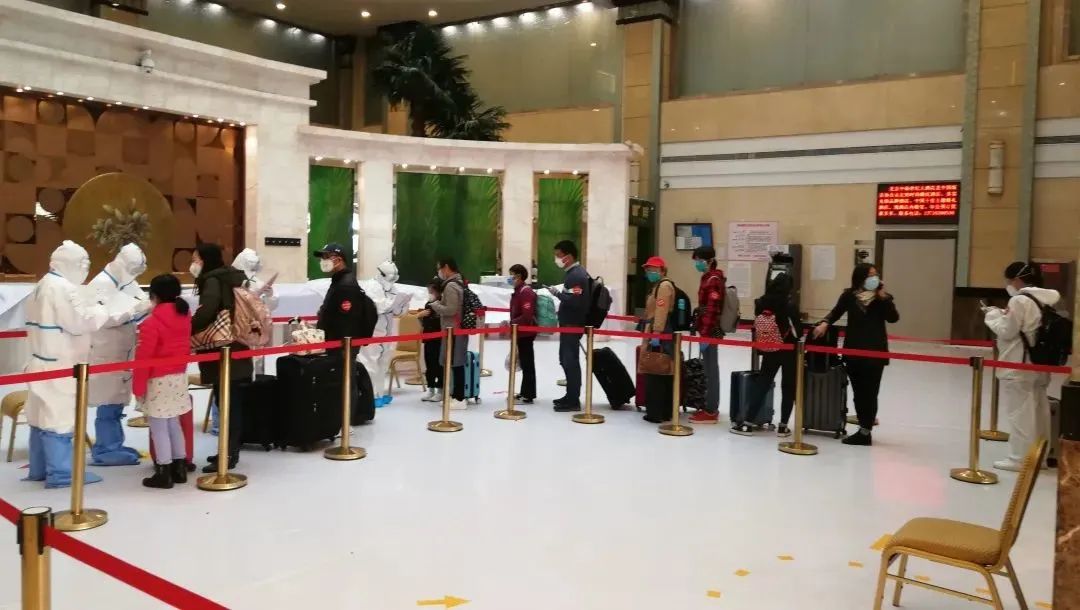 小區的工作人員在小區門口接到人后,登記、測量體溫,送至家中,給家門貼上封條或安上攝像頭或電子報警門簽。至此開始居家隔離14天。購買生活需要的物資、扔垃圾等均需要聯系社區工作人員上門送取。