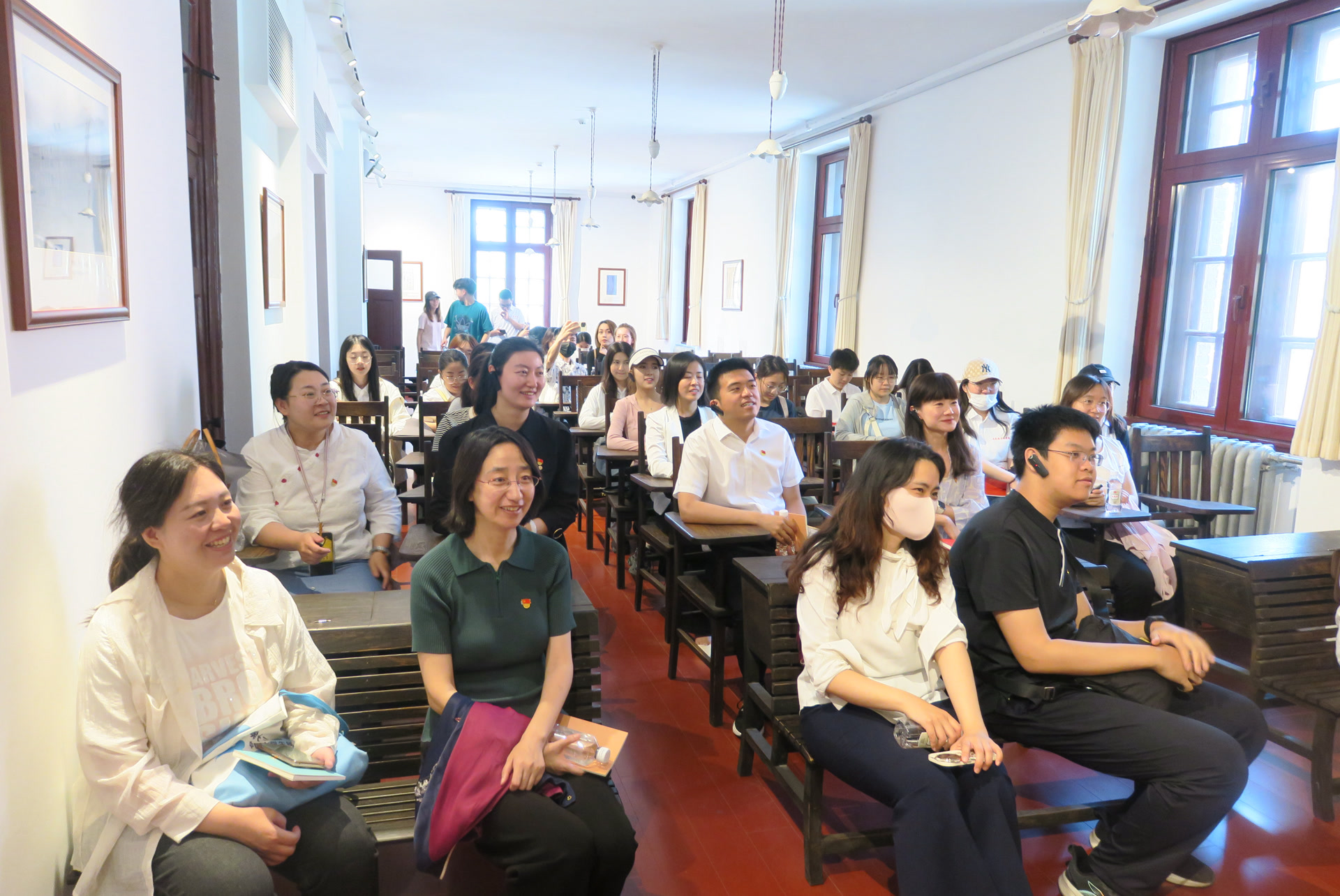 在北大紅樓,中國共產(chǎn)黨早期北京革命活動紀(jì)念館館長楊家毅作為研學(xué)導(dǎo)師,為師生們親自講解,分享青年毛澤東在北大紅樓、北大二院、楊昌濟(jì)故居、三眼井胡同、陶然亭慈悲庵、長辛店等紅色舊址開展革命活動的經(jīng)歷。師生一行坐在毛澤東、鄧中夏等先驅(qū)者們曾經(jīng)學(xué)習(xí)研討的座位上,仿佛穿越時空,開啟了一場穿越時空的對話。