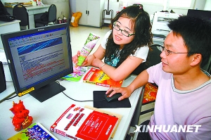 圖片: 大學生“村官”王成雄(右)正在網上申請報考公務員卜向東攝
