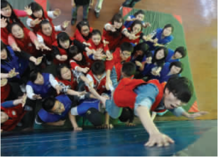 多名學生先后參加心理體驗。圖為學生正在上心理素質拓展體驗課。