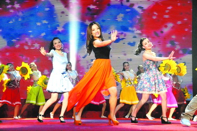 北京工商大學(xué)的學(xué)生們正在表演歌曲串燒《怒放的青春》。