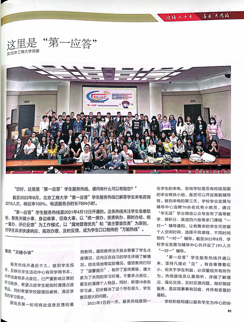 近日,《大學生》雜志,刊發文章:這里是“第一應答”,報道了我校學生服務熱線為學生辦實事、解難事,現轉載如下: