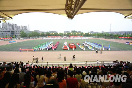 千龍網(wǎng)北京5月24日訊(記者 于振華)5月23日晚,北京工商大學(xué)第十二屆運(yùn)動(dòng)會(huì)開(kāi)幕式在良鄉(xiāng)校區(qū)體育場(chǎng)隆重舉行。千人廣播體操、竹竿舞、“變臉”表演、盛裝進(jìn)行音樂(lè)演奏、威震鑼鼓、煙火晚會(huì),該校5000余名師生共同打造的此次體育盛會(huì),堪稱(chēng)震撼人心。