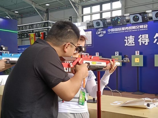 北京第二外國學院的吳承羲等四位志愿者的崗位是14號體育館射擊體驗區,主要負責指導游客體驗并維護電子射擊設備。這項體驗活動采用先進的電子感應系統,實現了無實彈的安全射擊,讓大眾都能在零風險中感受這項運動的樂趣與科技魅力。每天8:00-17:00在崗位堅守,每天組織約千人在互動區進行排隊體驗。