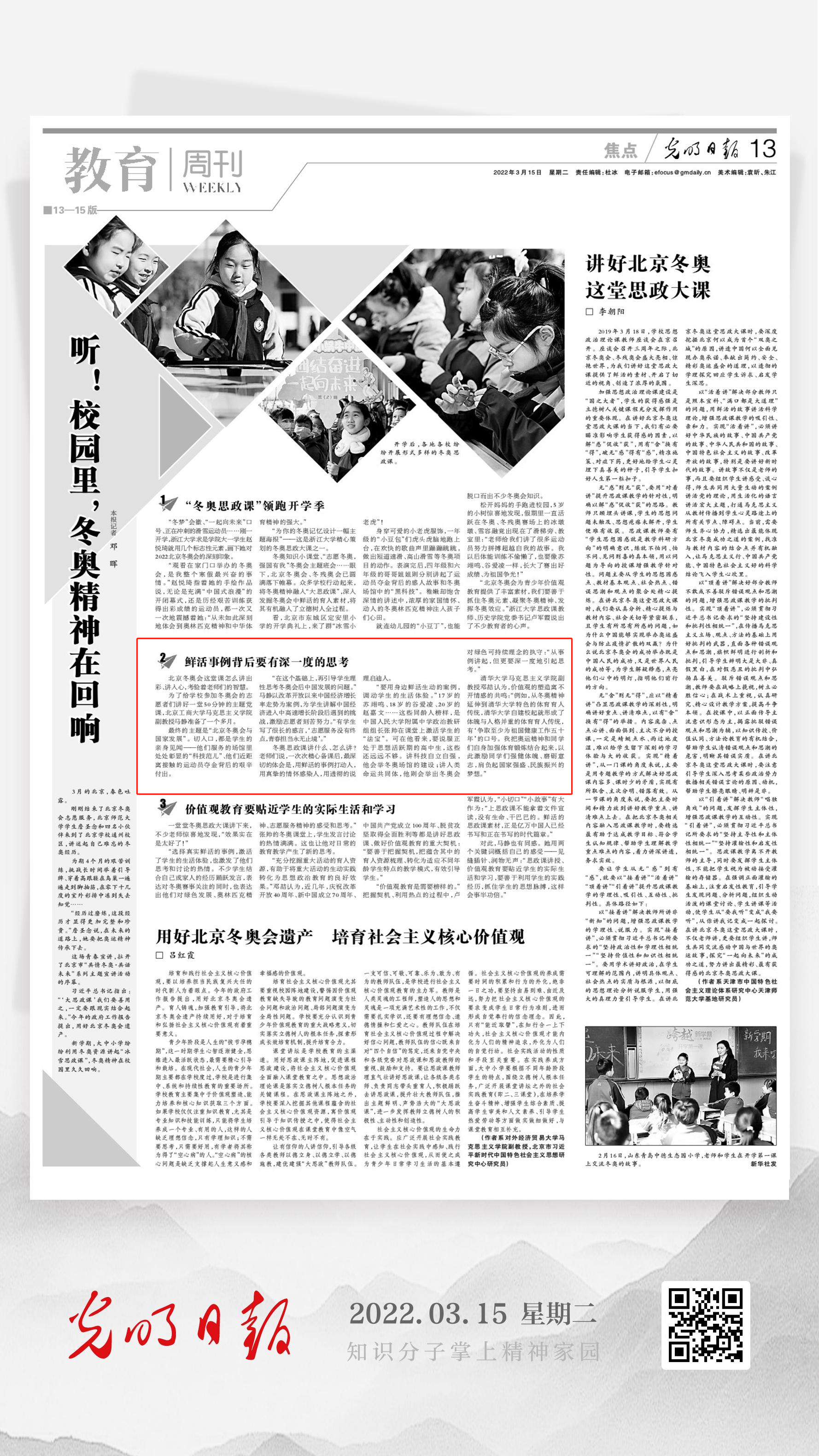 近日,光明日報對我校教師馬靜講授冬奧思政課事例進行報道,現轉載如下: