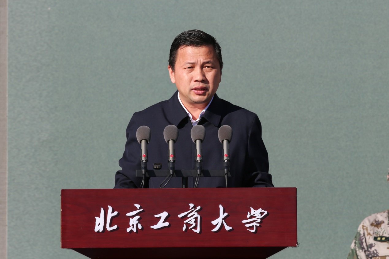 秋高宇闊陽光媚,氣爽空明雁陣悠。10月8日,北京工商大學2024級學生軍訓開訓儀式暨張思德事跡報告會在良鄉主校區舉行。西城區人民武裝部部長劉峙,房山區人民武裝部政委肖勇,承訓部隊中隊長張進,校領導黃先開、郭建華、寇紅江出席儀式。學院及相關職能部門領導、軍訓基地領導、軍訓旅指揮部領導、承訓教官、2024參訓學生參加儀式。開訓儀式由黨委學生工作部部長、學生處處長、武裝部部長兼軍訓旅政委鄭光主持。