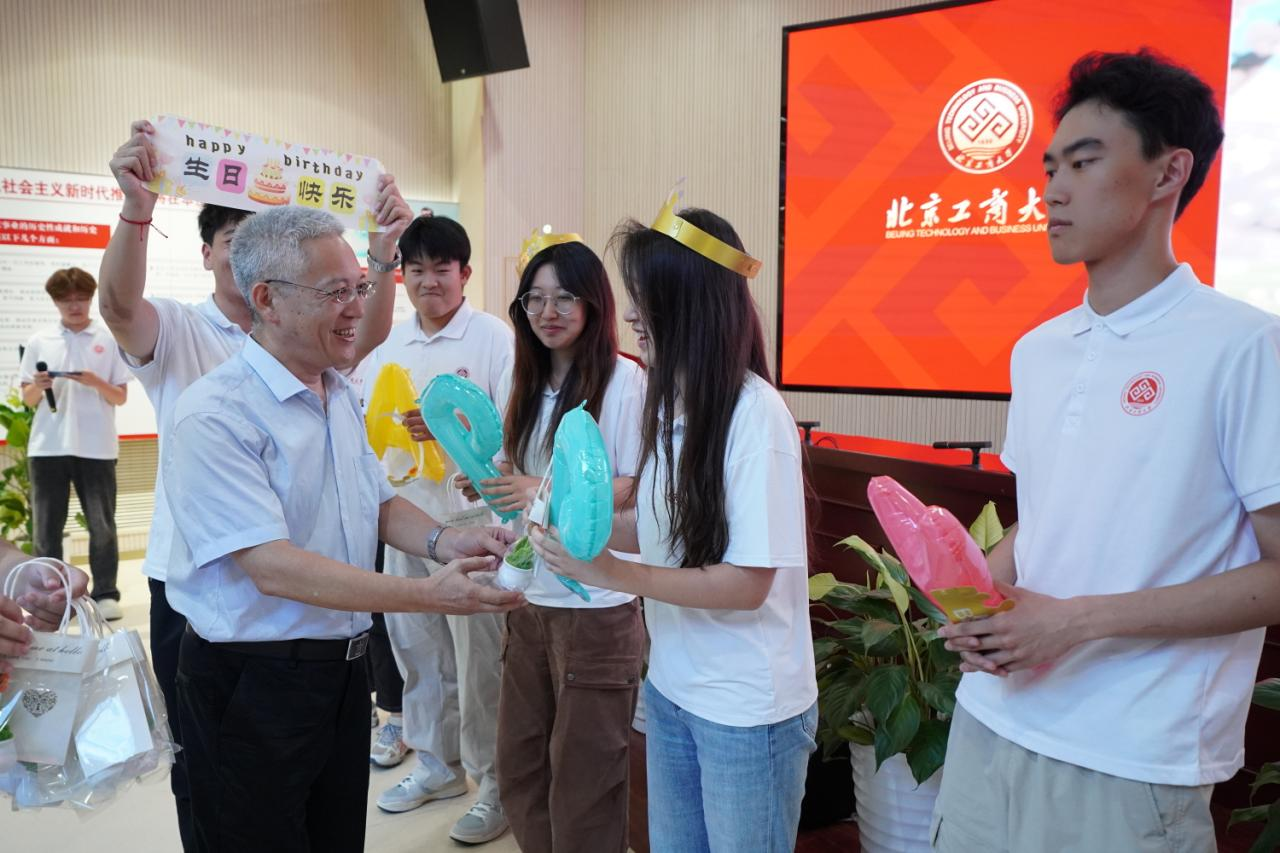 沈千帆以《賡續(xù)抗戰(zhàn)精神 勇?lián)鷱妵姑聲r代青年的歷史傳承與責(zé)任擔(dān)當(dāng)》為題為師生講授思政課,將抗戰(zhàn)史、北工商紅色校史融入信仰課堂。李中奇悉心指導(dǎo)專項任務(wù),為在校學(xué)生過“集體生日”,師生共聚一堂、同切蛋糕、齊唱生日歌。魏朗辰難掩激動之情“這是我成年后的第一個生日,紀(jì)念活動賦予了它更美好的含義,這也將是我最最難忘的生日!”