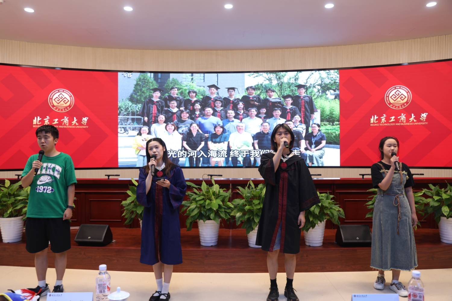 副院長(zhǎng)王康宣讀《北京工商大學(xué)數(shù)學(xué)與統(tǒng)計(jì)學(xué)院關(guān)于表彰2024屆校級(jí)優(yōu)秀畢業(yè)生的決定》, 10人獲“北京工商大學(xué)本科優(yōu)秀畢業(yè)生”榮譽(yù)稱號(hào),6人獲“北京市優(yōu)秀研究生畢業(yè)生”榮譽(yù)稱號(hào)。希望受表彰的同學(xué)秉承“求真、立德、勤奮、創(chuàng)新”的校訓(xùn),珍惜榮譽(yù),發(fā)揚(yáng)成績(jī),堅(jiān)定理想信念,矢志拼搏奮斗,在新的工作崗位上爭(zhēng)取更大的成績(jī)。希望全體學(xué)生向優(yōu)秀畢業(yè)生學(xué)習(xí),站穩(wěn)人民立場(chǎng),練就過(guò)硬本領(lǐng),投身強(qiáng)國(guó)偉業(yè),在實(shí)現(xiàn)中華民族偉大復(fù)興的新長(zhǎng)征路上奮勇搏擊。