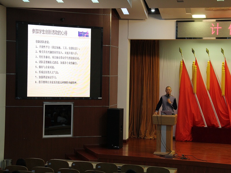 張凱偉在致辭中對學(xué)院過去一年的科創(chuàng)成果給予肯定,希望同學(xué)們更加愛學(xué)習(xí)、愛科技、愛創(chuàng)新,吸收兄弟院校先進經(jīng)驗,積極投身課程學(xué)習(xí)和科技活動。他宣布2016年學(xué)術(shù)創(chuàng)新月暨科技文化節(jié)正式開幕。