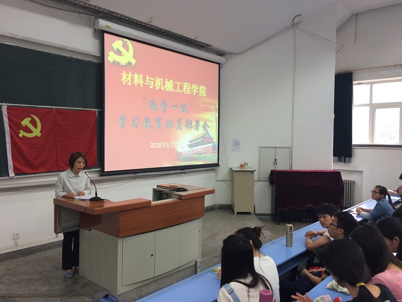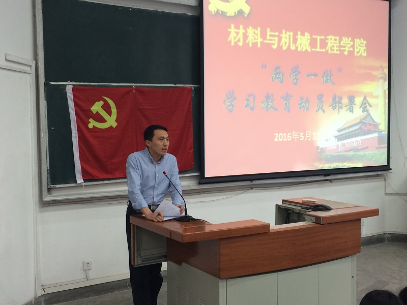 材料與機械工程學院黨委于5月11日下午分別在兩校區召開“兩學一做”學習教育動員部署大會,學院全體教工黨員和本科生、碩士研究生黨員參加了會議。會議分別由副書記楊秀萍、黨務秘書周黎主持。