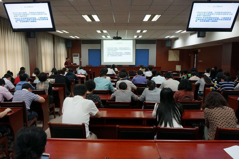 施楓主任以“慕課與翻轉課堂”為題,對這種新近涌現出來的在線課程模式進行了全面解讀。施主任從慕課(MOOC)起源的背景和重要意義講起,指出MOOC是高等教育領域最為深刻的技術變革,之后就慕課的特點和三大平臺進行了細致的講解和對比。