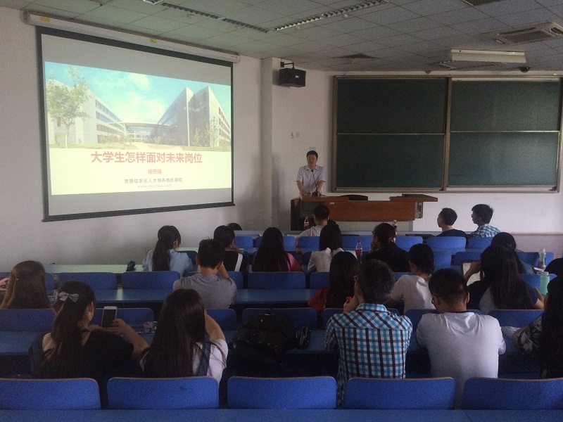 新道人才網運營總監楊世強作了題為“大學生怎樣面對未來崗位”的專題講座,從如何選擇企業,企業文化,企業對員工的選擇等多方面的內容,通過生動的描述將晦澀的知識簡化,讓同學們更容易接受。