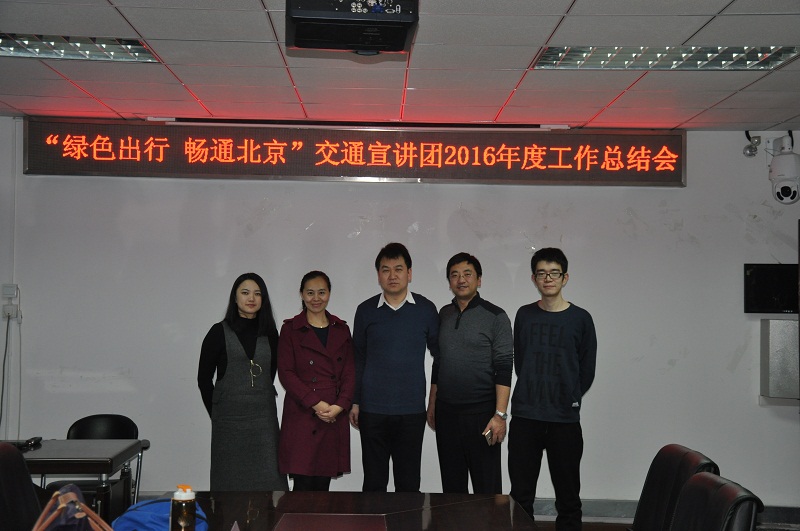 為進一步加強北京市交通宣教中心的溝通交流,進一步推進和深化iBUS學雷鋒愛公交小組活動效果,1月11日“綠色出行暢通北京”交通宣講團大學生志愿者分團(iBUS學雷鋒愛公交小組)2016年度工作總結會暨深化合作座談會在阜成路召開,北京市交通宣傳教育中心副主任郭群、文化宣傳部部長李崇宇、副部長任航,計信學院黨委副書記張凱偉、iBUS指導老師李玉嫻參加了會議。