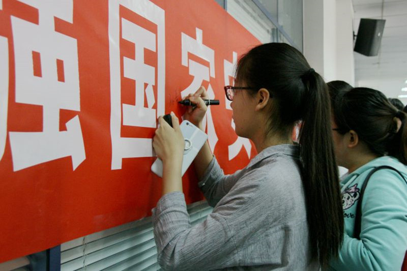 會后,班干部們在宣傳條幅上紛紛簽名,表達了對國家安全教育的信心和決心。