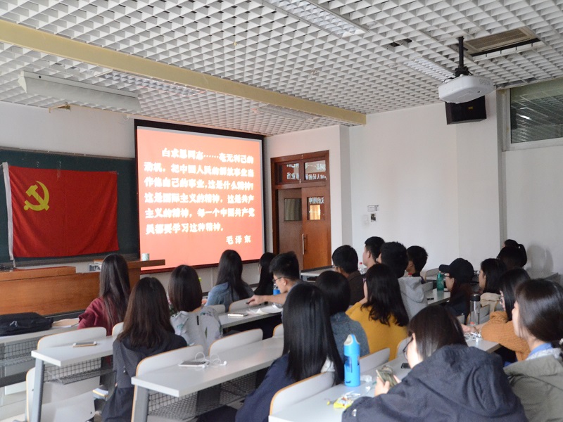 全體成員一起觀看了歷史記錄片《白求恩》。影片講述了白求恩一心向黨,為黨和人民奉獻一生的感人故事,大家看完后都感觸頗深。由董笑笑、張楚童、斗海峰三位積極分子為大家分享了觀后感。此次影片的觀看激發了在場每一個人的斗志,大家一致認為想要向黨組織靠攏,就一定要學習白求恩同志犧牲自我、無私奉獻的精神,為共產主義事業奮斗終生。