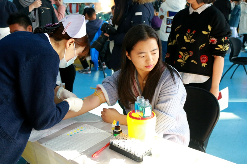 現場氣氛高漲,很多同學都是結伴而來,他們交流著激動緊張的心情,彼此鼓勵。獻血隊伍中有一個特殊群體——退伍老兵,他們每年都會參與獻血,這已然成為他們之間的約定。本次無償獻血活動一開始,便有20名退伍老兵整齊的站在隊伍中。“獻血是力所能及的事情,可以幫助別人,我的血也沒有問題,那就來做吧。”來自藝傳學院的王玉祥說。其中也有很多同學是第一次參與獻血,來自會計163班的劉雨一邊填表一邊說:“我現在真的很激動,其實我有一些暈血,但我還是想來試試,希望能夠盡我所能,幫助別人。”