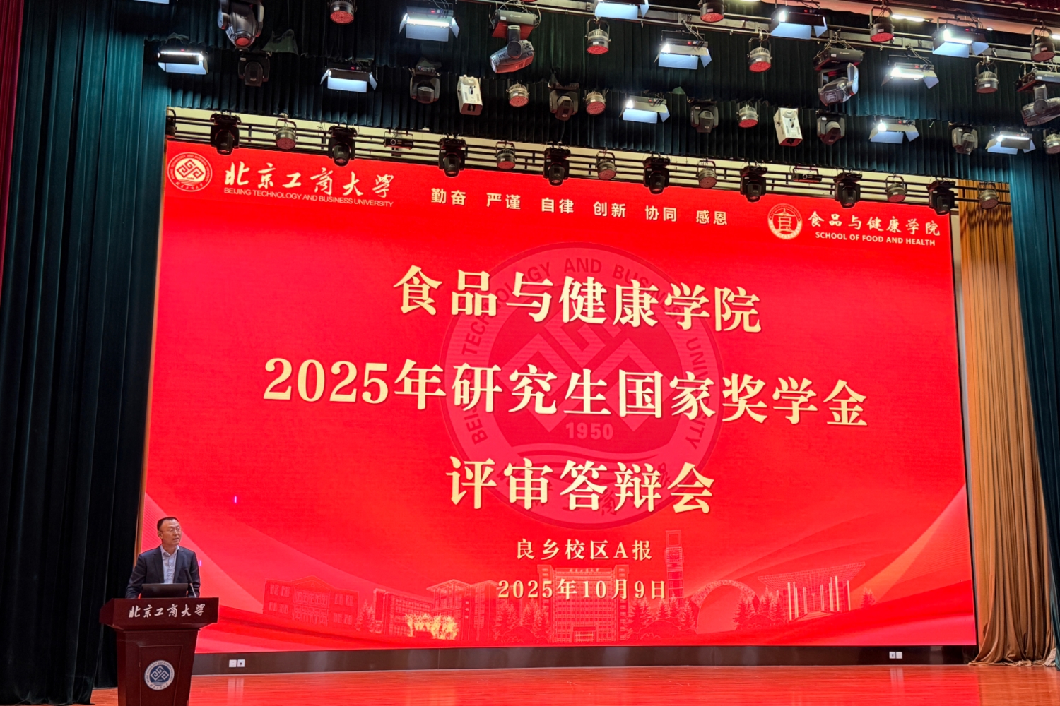 為深化研究生教育改革,選拔樹立優秀典型,營造崇尚學術、追求卓越的育人氛圍,10月9日,食品與健康學院在良鄉校區A報告廳隆重舉行2025年研究生國家獎學金評審答辯會。學院院長王彥波、黨委副書記熊慧、副院長劉慧琳、孫嘯濤、院長助理張嬋,以及各系主任、教師代表、專兼職輔導員和研究生代表共計200多人參會。會議由李泰沛同學和劉晨朔同學主持。