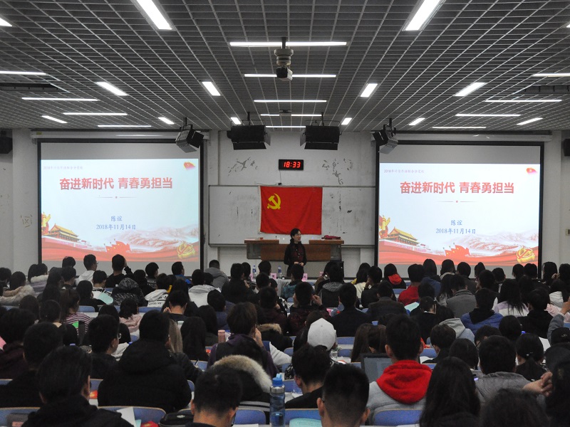 開班儀式后,陳誼為大家講授黨校第一課“奮進新時代,青春勇擔當”。在分析中共十九大報告后,她就“講奉獻,比作為,勇擔當”做出四方面講解。她提到奉獻責任與擔當是黨員的基本素養,責任擔當是由共產黨的先鋒隊性質、中國特色社會主義的復雜理論決定的,擔當精神是中國共產黨,更是中華文明的堅實本色。其次,她提到新時代對黨員的新要求:把握大勢、要有擔當以及精于實干。責任擔當不是針對領導干部的要求,而是對每名黨員的要求,黨員們要時刻謹記干部的“一二三四”標準,以身作則,勇于擔當。