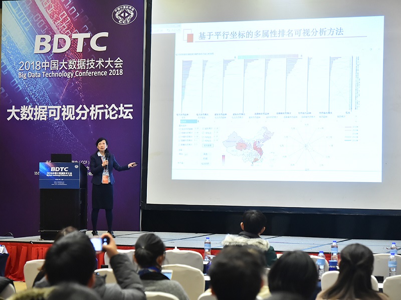 2018中國(guó)大數(shù)據(jù)技術(shù)大會(huì)-大數(shù)據(jù)可視分析論壇邀請(qǐng)了日本御茶水女子大學(xué)伊藤貴之教授、微軟研究院劉夢(mèng)塵博士、中國(guó)科學(xué)院計(jì)算機(jī)網(wǎng)絡(luò)信息中心單桂華研究員、北京工商大學(xué)食品安全大數(shù)據(jù)技術(shù)北京市重點(diǎn)實(shí)驗(yàn)室主任陳誼教授、百度ECharts孵化項(xiàng)目管理委員會(huì)羨轍工程師、北京大學(xué)袁曉如研究員、海云數(shù)據(jù)劉秋雯副總裁、360企業(yè)安全集團(tuán)天眼事業(yè)部張卓總經(jīng)理和北京永洪商智科技有限公司邵文龍高級(jí)副總裁分別作了題為“Clustering and Layout of Graphs with Attributed Nodes”、“深度學(xué)習(xí)的可視分析”、“科學(xué)可視化加速科學(xué)探索與發(fā)現(xiàn)”、“食品安全大數(shù)據(jù)可視分析方法研究”、“ECharts的大數(shù)據(jù)可視化實(shí)踐” 、“可視化-鏈接機(jī)器與人的橋梁” 、“能力構(gòu)建AI與可視化分析應(yīng)用新場(chǎng)景” 、“安全與可視化結(jié)合創(chuàng)造新的活力” 、“數(shù)據(jù)分析為客戶帶來可感知,可評(píng)估的價(jià)值”多個(gè)特邀報(bào)告。來自全國(guó)各地的100余位專家學(xué)者、政府人員、企業(yè)人士和高校師生參加了論壇,論壇由北京大學(xué)袁曉如研究員主持。