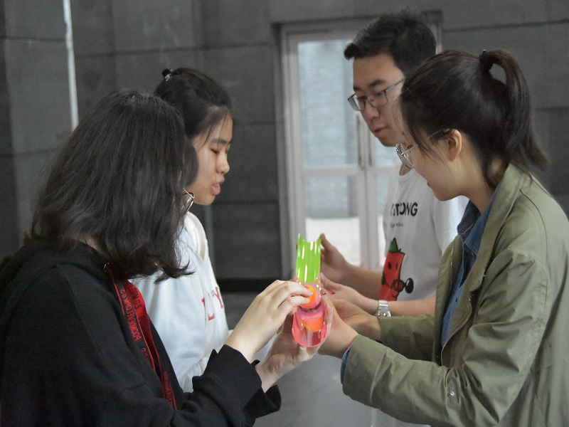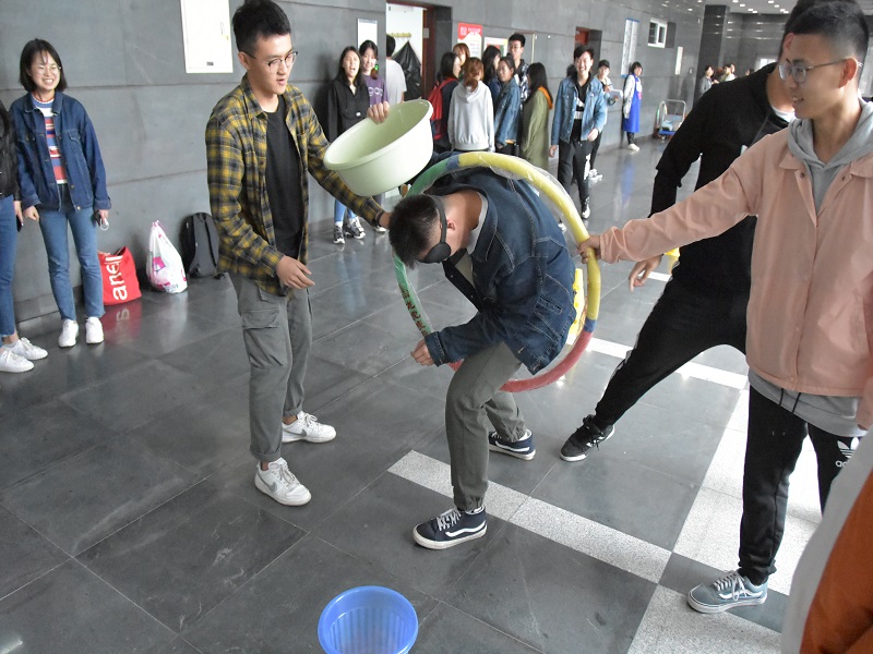 本次心理運動會共設置了“幾碗胡辣湯”、“七手八腳”、“蒙眼接力賽”、“珠行萬里”四項活動。“幾碗胡辣湯”考驗隊員們的注意力和反應速度,同時需要所有成員的默契配合,游戲過程中充滿歡聲笑語,所有同學都積極參與,增進了彼此間的友誼。在“七手八腳”活動中,大家各顯神通,呈現出各樣造型,有同學不小心摔倒依然堅持比賽,此項活動強化了團隊精神和反應速度。在“蒙眼接力賽”中,團隊里每兩人一組進行接力,一人戴著眼罩頭頂小水盆在另一名組員的無聲引導下越過設置的障礙,撈取乒乓球頂在頭頂,然后運回起點交給下一組接力,此項比賽培養了人與人之間的信任關系,鍛煉勇氣,磨練意志,提升了同學們的合作精神,有的同學在帶上眼罩之后緊張不安,但在同學的幫助指引下克服恐懼謹慎前行,有的同學則大步流星,和引導同學配合默契,展現了在黑暗中的心理狀態。在“珠行萬里”活動中,每個團隊的每位隊員拿一根半圓形的球槽,將乒乓球連續滾動到下一位隊員的球槽中,并迅速排到隊伍末端,繼續傳送前方隊員傳來的球,直到球安全到達指定目的地為止。大家團結一致,互相鼓勵,每個人的目光都集中在一顆小小的乒乓球上,乒乓球掉落之后隊員們也不氣餒,重頭再來,同學們成功的歡呼聲不絕于耳。