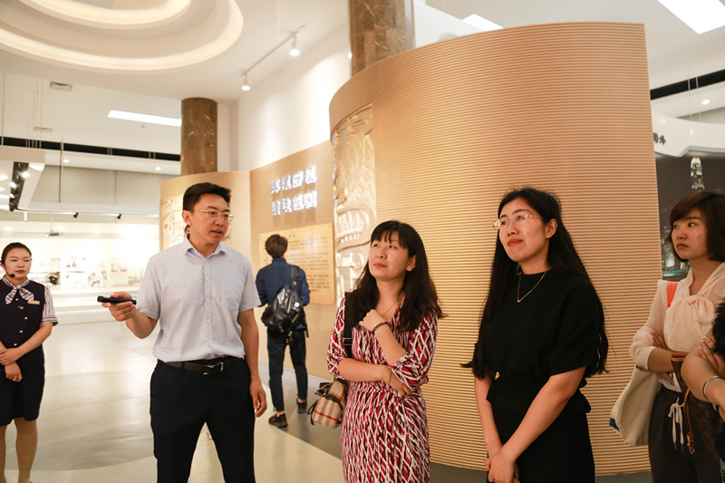 師生們首先參觀了首鋼陶樓。付曉明圍繞“夏奧休眠一座城,冬奧喚醒一座城”的主題展開講解,并帶領同學們觀看了首鋼宣傳片,依次參觀了首鋼發展歷程系列展覽單元、城市基礎設施產業單元、節能環保產業單元、健康醫療產業單元、文化體育產業單元、金融服務產業單元。同學們通過觀看圖文、視頻的方式,對于首鋼集團加快推進新時代首都城市復興新地標建設有了更為直觀的了解。