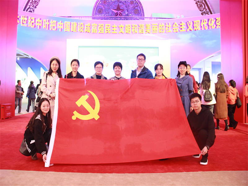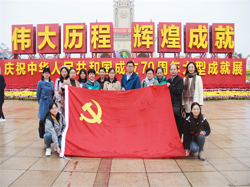 為深入學習貫徹習近平新時代中國特色社會主義思想,深化“不忘初心、牢記使命”主題教育,10月17日,馬克思主義學院教師黨員在黨總支書記、院長王魯娜的帶領下前往北京展覽館,參觀“偉大歷程 輝煌成就——慶祝中華人民共和國成立70周年大型成就展”。