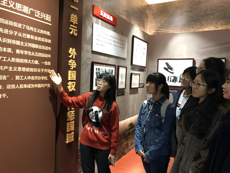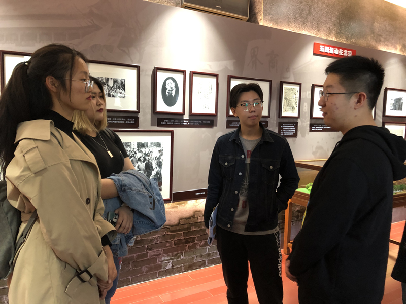 參觀過程中,大家自行結成小組進行參觀,分享學習感悟。黨總支副書記于濤和老師同學們親切交流參觀感受,他談到,外語青年要時刻銘記自己的社會責任,勇敢地承擔起時代賦予我們的使命。同志們認真領悟“五四精神”,回溯追憶當時歷史,紛紛表明作為一名學生黨員要一如既往繼承和發揚革命先輩們艱苦奮斗的精神,勇擔使命、砥礪前行。外國語學院本科學生黨支部黨員原翊翔分享了青年時代的毛主席為民請命,在191912月中旬作為湖南公民代表團團長,率團向北京政府請愿的故事,談到:“天下興亡,匹夫有責。”作為當代學生黨員的我們必須堅定立場,做一些力所能及的事情來愛國。
