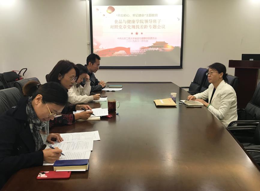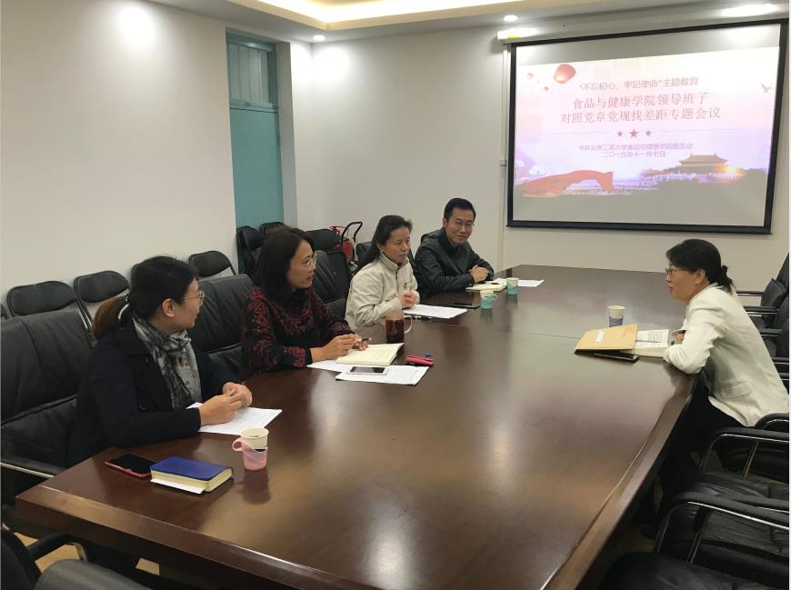 11月7日上午,食品與健康學院領導班子召開“對照黨章黨規找差距”專題會議。學校主題教育第二指導組組長、黨委宣傳部常務副部長何猛到會指導,學院黨委書記胡燕霞主持會議,院長王靜、副院長劉野、黨委副書記單靜敏參加會議。