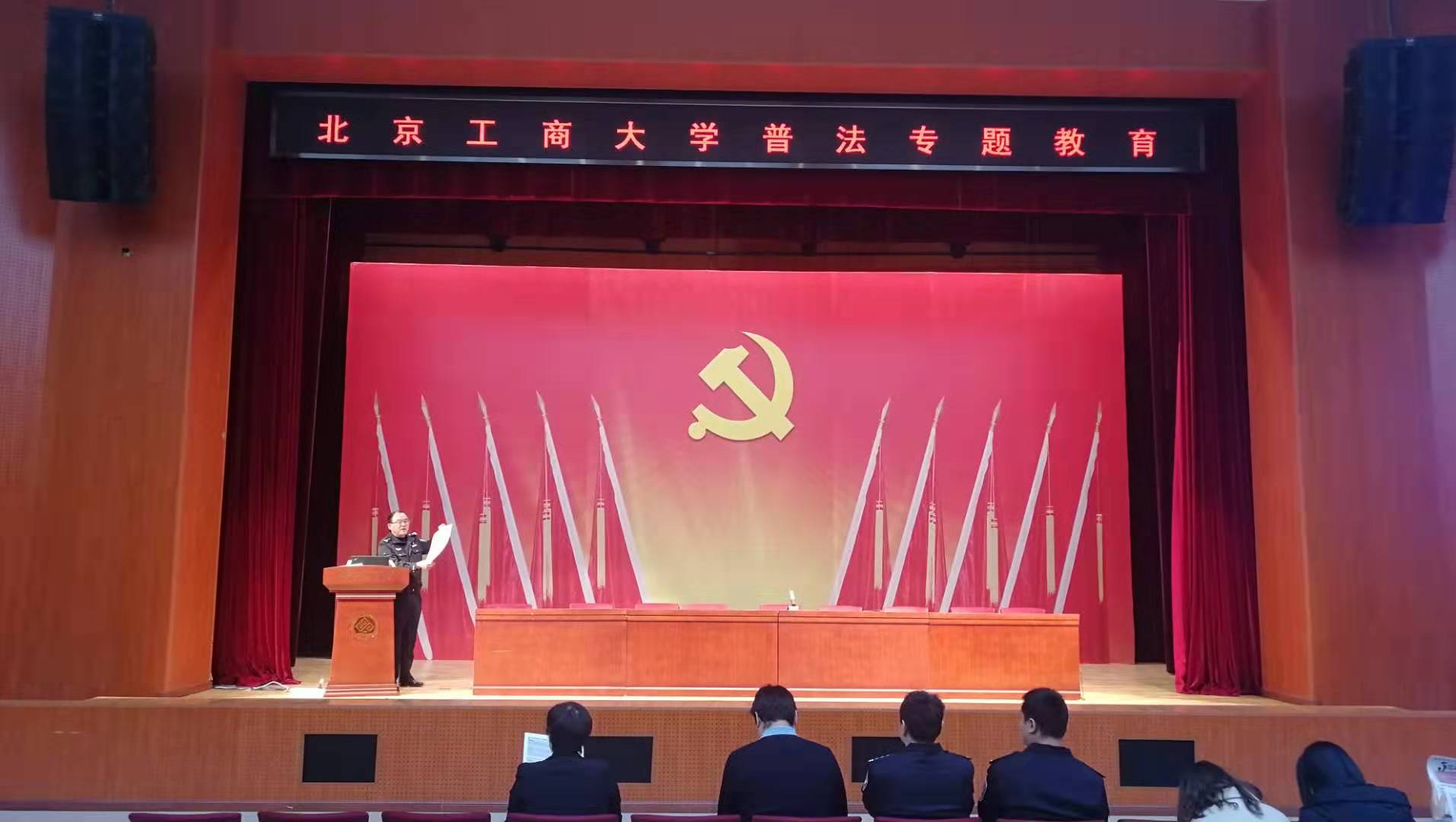 為進一步增強我校學生法制意識,提升安全防范和自我保護能力。11月27日,學校與甘家口派出所在阜成路校區共同舉辦法制宣傳教育講座。講座由保衛處副處長尹寶星主持,阜成路校區片區民警、高級警官王高波和工商銀行北京分行法律事務部王海鳳經理主講。海淀分局高校內保支隊高校中隊隊長宋愛欣、民警白鵬飛、甘家口派出所打擊辦案隊副隊長兼團支部書記汪堃、工商銀行北京西客站支行紀委書記牛瑞金到場,近800名學生參加了講座活動