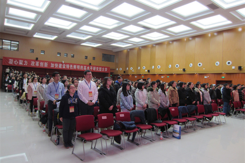 大會在莊嚴的國歌聲中拉開帷幕。張國龍同志宣讀了學校黨委《關于同意中共北京工商大學商學院召開黨員大會的批復》。