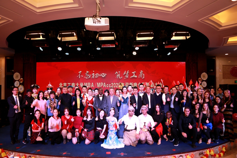 交接儀式后,文藝演出正式開始。激情洋溢、魅力四射的開場舞拉開了演出序幕。詩朗誦《共聚首北工商》展現了莘莘學子情系北工商、立志做棟梁的精神風貌。優雅的傣族舞、悠揚的葫蘆絲、動聽的手風琴,一個個精心編排的節目充分展示了MBA與MPAcc同學的才華,贏得了臺下觀眾熱烈的掌聲。同學們帶來的漢服秀展示《禮儀之邦》華美絢麗,展現了中華服飾文化的博大精深。來自古巴、也門、剛果、利比里亞等國家和地區的16位留學生的舞蹈將晚會氣氛推向高潮。今年是偉大的祖國70華誕,大家共同為祖國獻上一首贊歌,在《我和我的祖國》大合唱中,迎新晚會圓滿落下帷幕。