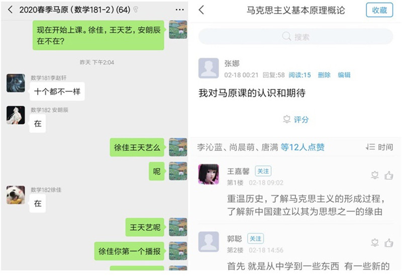 教學兩周后,老師們初步形成了“學習通+騰訊會議”的雙保險教學模式。老師們根據自己的特點和授課實際,基本實現了學生簽到、網絡面授、作業布置、課堂討論、文獻閱讀、問題解答等多種教學環節的正常運轉。