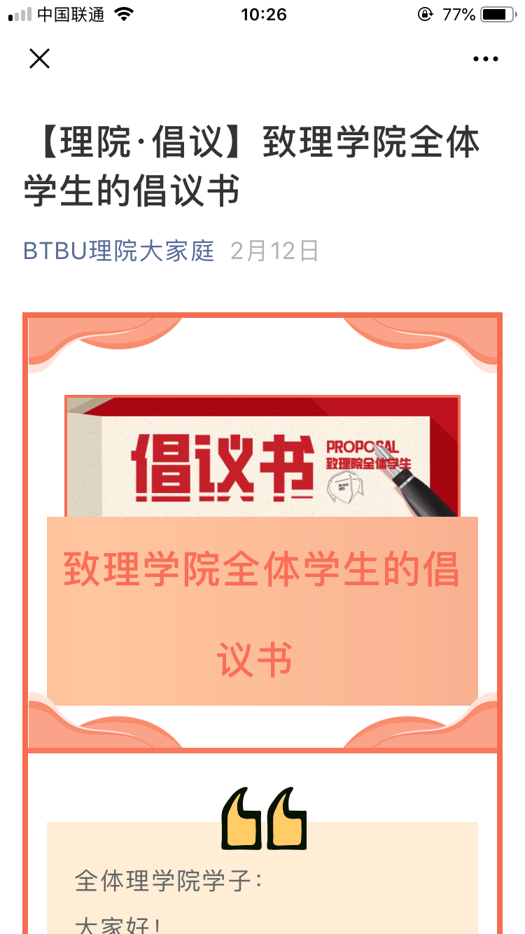 為貫徹落實學校“停課不停學”的要求,在開學前期,為使同學們居家也能養成良好的學習、生活習慣,提前進入學習狀態,為正式上課做準備,理學院團委、學生會、青志協全體學生干部發出了致理學院全體學生倡議書。倡議同學們提前調整作息時間,堅持早起上課;對新學期的學習做出合理規劃,并堅持嚴格執行。倡導同學們充分利用網絡資源,上好網絡課程,做好課堂筆記,在學習過程中注意及時查漏補缺,確保學習效果。
