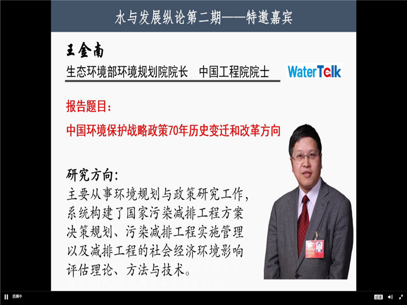 此次論壇中,王金南院士做了題為《中國環(huán)境保護(hù)戰(zhàn)略政策70年歷史變遷和改革方向》的報(bào)告。他系統(tǒng)回顧了新中國成立70年以來環(huán)境保護(hù)戰(zhàn)略政策的歷史變遷,分析了演進(jìn)脈絡(luò)和階段性變化特征以及取得的成績。報(bào)告指出,我國基本建成了符合國情且較為完善的環(huán)境戰(zhàn)略政策體系,在生態(tài)文明建設(shè)和環(huán)境保護(hù)法制與體制改革、生態(tài)環(huán)境目標(biāo)責(zé)任制、生態(tài)環(huán)境市場經(jīng)濟(jì)政策體系以及多元有效的生態(tài)環(huán)境治理格局下取得了重大成就。結(jié)合新時代生態(tài)文明建設(shè)和美麗中國建設(shè)的目標(biāo)需求,王金南院士提出了未來我國生態(tài)環(huán)境保護(hù)戰(zhàn)略政策的基本走向和改革目標(biāo),并指出了管理體制、生態(tài)法治、空間管控、市場機(jī)制、公眾參與、責(zé)任考核和全球治理七大改革方向。王金南院士還與網(wǎng)絡(luò)會議室中的學(xué)者、學(xué)生進(jìn)行了交流互動,耐心解答了直播平臺觀眾在討論區(qū)提出的問題。
