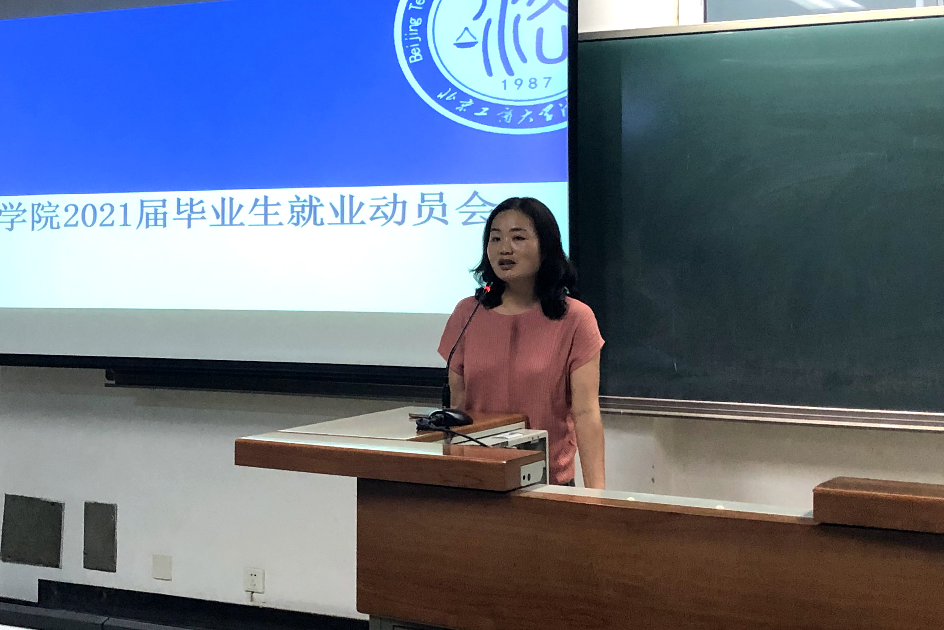 大會伊始,劉晶為同學們分析了上屆畢業生就業的形勢,鼓勵同學們充分做好就業準備,大膽拓寬就業渠道,自信果敢、積極就業。同時,勉勵大家要珍惜在校實習機會,學習總結工作經驗,為將來高質量就業提前做好準備。