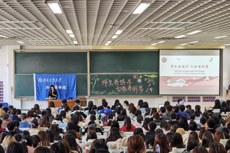 為貫徹落實(shí)習(xí)近平新時(shí)代中國(guó)特色社會(huì)主義思想,全面貫徹黨的教育方針,落實(shí)立德樹(shù)人根本任務(wù),切實(shí)推進(jìn)“三全”育人工作,進(jìn)一步加強(qiáng)學(xué)風(fēng)建設(shè),11月19日下午,外國(guó)語(yǔ)學(xué)院召開(kāi)“師生共攜手、七秩譜新篇”秋季學(xué)期導(dǎo)師學(xué)生懇談會(huì)。外國(guó)語(yǔ)學(xué)院黨總支書(shū)記劉影、副院長(zhǎng)苗天順、副院長(zhǎng)關(guān)濤、黨總支副書(shū)記于濤、院長(zhǎng)助理王景云、專(zhuān)職組織員鄧浩、新生輔導(dǎo)員侯雅婷和學(xué)院所有導(dǎo)師及18、19、20級(jí)全體本科生參加會(huì)議。會(huì)議由團(tuán)委書(shū)記張悅主持。