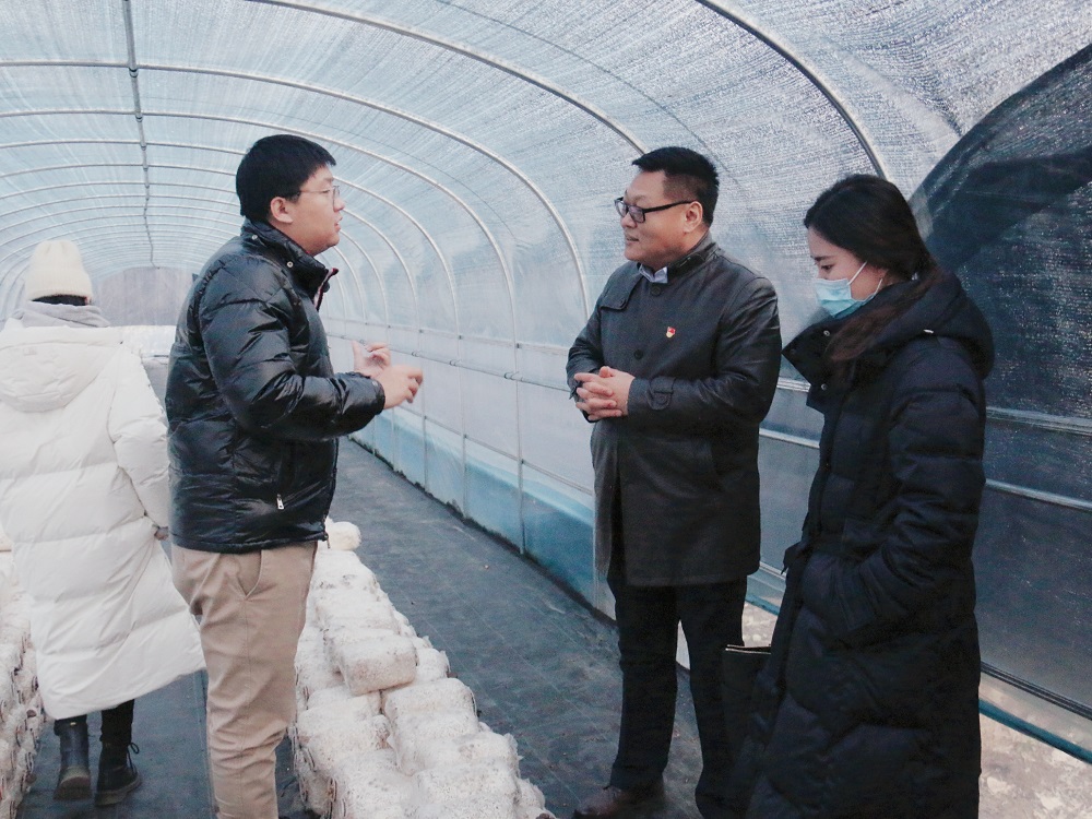 隨后,劉文彬帶領師生參觀了村容村貌和低收入產業基地。二站村曾是依托磚廠繁榮的“富裕村”,遵循生態文明建設要求關閉了磚廠,在村委帶領下,全村找準產業轉型升級方向,興辦“種桑養桑”為核心的桑葉茶生產基地,目前已初見成效。同學們參觀了桑葉茶和速凍食品生產車間、菌菇大棚,了解了茶葉種植、生產和由此帶動的菌菇種植、速凍食品產業。廠長熱情地講解演示,并邀請同學們品茶,大家體會到保護綠水青山、抓好生態文明建設、實現人與自然和諧統一對于振興鄉村的重要意義。二站村近些年的基礎設施建設成效也讓同學們感受到貫徹“以人民為中心”發展思想、做好民生工程的深刻內涵。