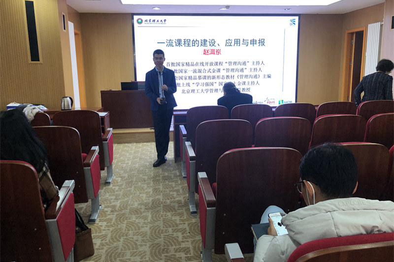 124日下午,商學院邀請北京理工大學管理與經濟學院教授、首屆北京市青年教學名師趙洱崠教授為全院教師作題為《一流課程的設計、建設和應用》的專題講座。趙洱崠是首批國家精品在線開放課程管理溝通主持人,近年來為300多所高校做慕課、混合式教學、課程思政等專題報告等。他以一流本科課程建設為出發點,分析一流本科課程建設背景,深度解讀了教育部關于教育教學相關重要會議及文件精神要義,強調要淘汰水課、打造金課,合理提升學業挑戰度、增加課程難度、拓展課程深度,切實提高課程教學質量,將價值塑造、知識傳授和能力培養三者融為一體,全面推進課程思政建設;既要創新課堂教學模式,又要推進現代信息技術在課程思政教學中的應用。趙洱崠著重介紹了“3-4-6-3”在線開放課程教學設計的方法,包括教學理念、教學目標、教學體系及教學保障措施等多個環節的組織方式,并分享了慕課的錄制經驗。最后,趙洱崠指出,教材和課程的混合式教學體系,要以激勵學生參與式學習為核心目標,建立線上+線下的融合體系,統籌課前+課中+課后的三階段學習任務,并強調教學目標要與立德樹人相融合,教學內容要與思政精神相融合,教學方法要與信息技術相融合。通過此次講座,廣大教師更加清楚地了解了“一流課程”建設的內涵,為建設具有商科特色的“金課”,加快推進課程優化升級,推動課堂革命起到了積極的作用。