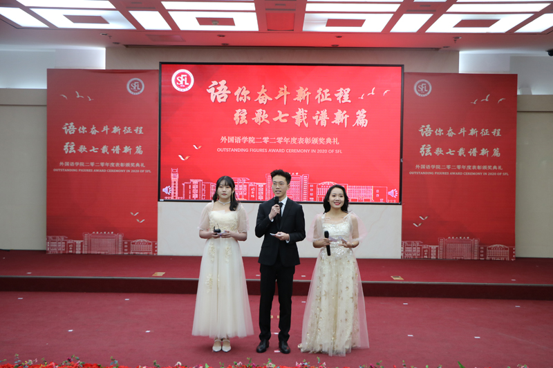 為表彰先進,凝聚合力,展示優(yōu)秀學(xué)子風(fēng)采,在全院學(xué)生中形成向先進榜樣看齊的學(xué)習(xí)風(fēng)氣,12月16日,外國語學(xué)院在良鄉(xiāng)校區(qū)模擬法庭舉行2019-2020學(xué)年“語你奮斗新征程,弦歌七載譜新篇”表彰頒獎典禮。學(xué)生處副處長許峰,學(xué)院黨總支書記劉影、黨總支副書記于濤,副院長苗天順、關(guān)濤、史巖林,院長助理王曉慶、王景云,專職組織員、輔導(dǎo)員、本科生及研究生參加本次典禮。