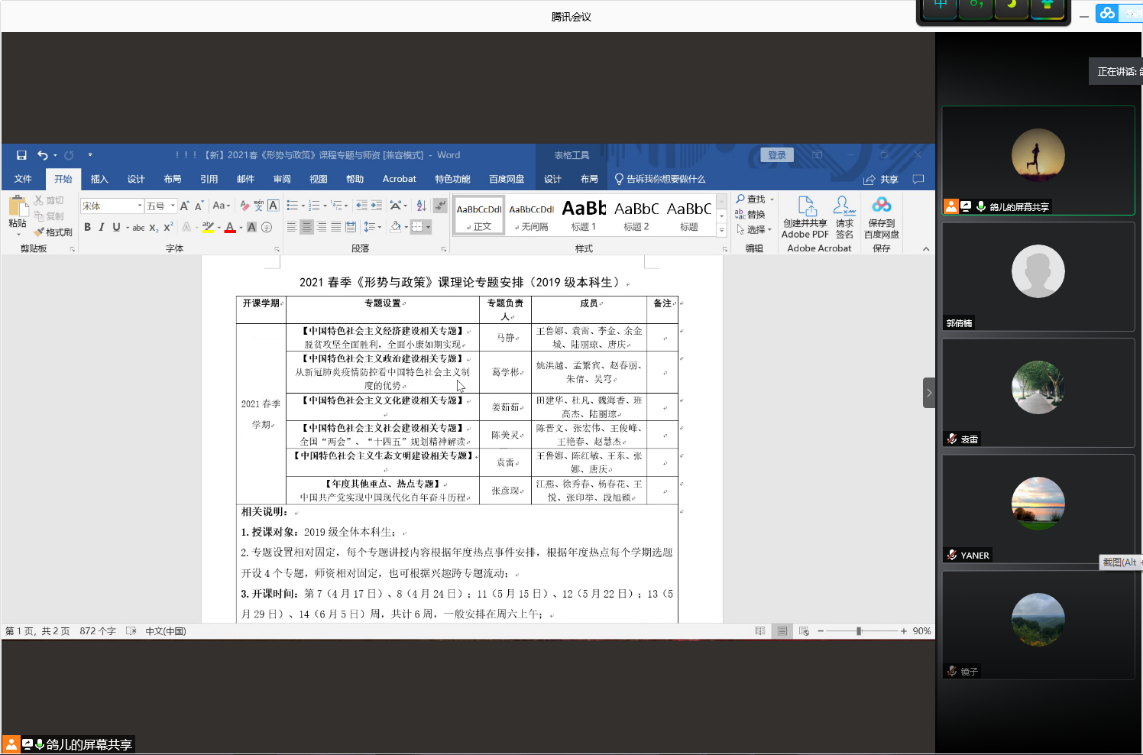 3月5日,學(xué)院召開新學(xué)期第一次全體教職工大會,從總體上布置了本學(xué)期思政課工作任務(wù)及重點推進工作,強調(diào)為迎接建黨100周年,開展好以“講好中國共產(chǎn)黨故事”為主題的思政課教學(xué)活動。隨后,各教研室根據(jù)學(xué)院統(tǒng)一安排,遵照疫情防控原則,分別通過線上會議方式進行集體備課,推動思政課各項工作落地實施。